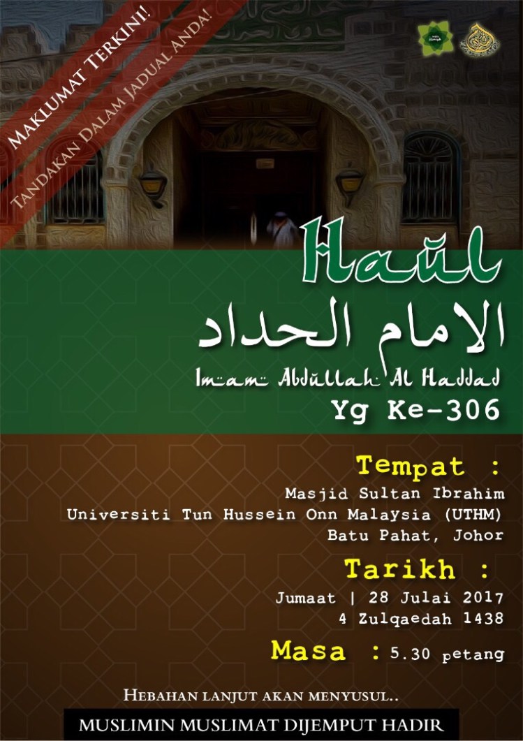 Malaysia Haul Habib Ali Alidrus Batu Pahat, Johor 28th July 2017 Share this: Share on X (Opens in new window) X Share on Facebook (Opens in new window) Facebook Like Loading...